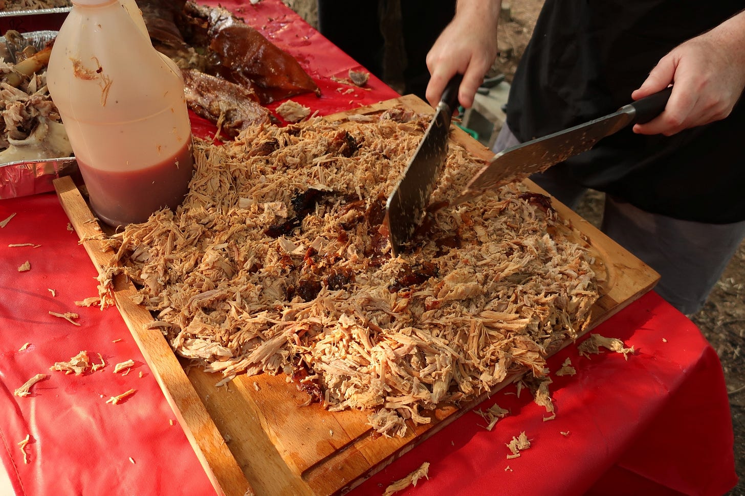 The head was included with the pig last time around, and I may have thrown it on the pit for show, but I did not even think of trying any part of it, which, as any barbecue aficionado knows, is known for being really tasty. Had I researched more ahead of time, I would have realized that the muscles in a pig's head, especially the cheeks, are known for being tender and flavorful due to their high fat and collagen content. Next time around, I'm going to make sure I at least try some pig cheeks.